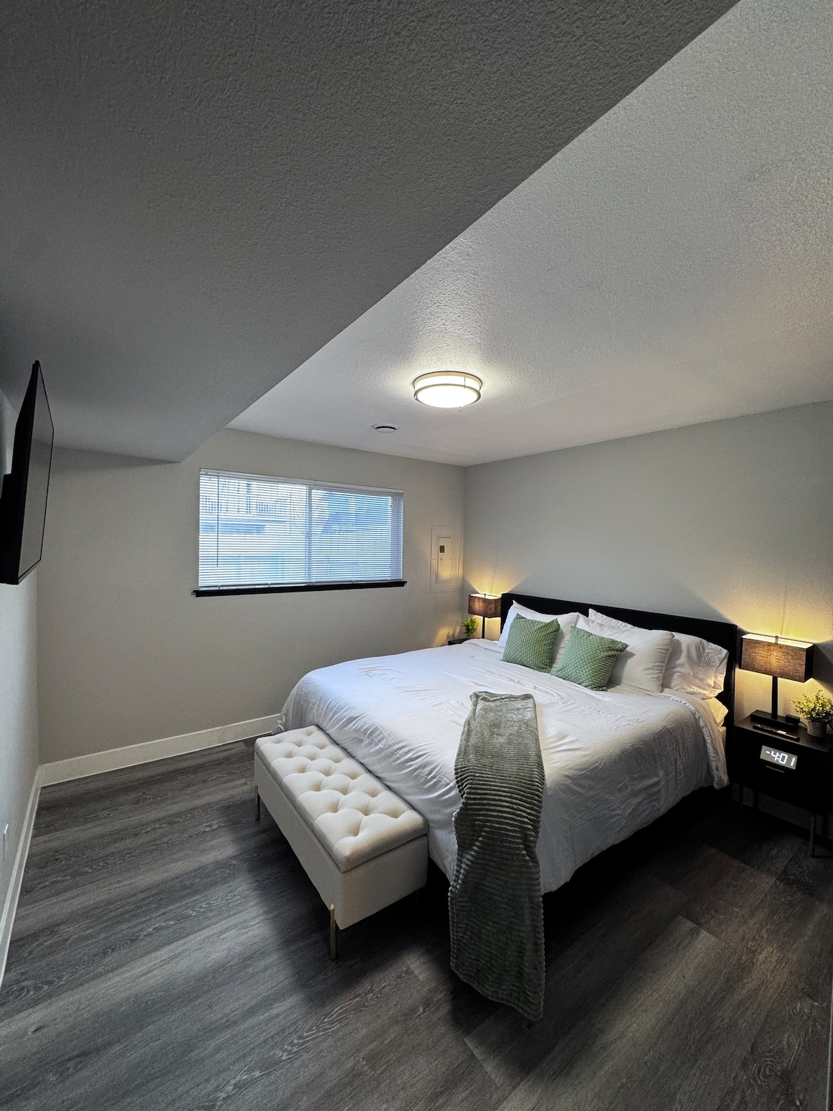 Profitez d'un séjour paisible dans ce tout nouveau bâtiment moderne et rustique indépendant d'une chambre à Kennewick, près de Canyon Lakes. Le loft confortable dispose d'un lit queen size confortable, parfait pour une bonne nuit de sommeil. Avec le Wi-Fi, le chauffage et la climatisation, les voyageurs peuvent rester connectés et confortables tout au long de leur séjour. Profitez de tout ce que Kennewick a à offrir lorsque vous séjournez chez nous. Cet ADU indépendant se trouve derrière la maison principale avec un parking hors rue, entièrement approvisionné en vaisselle/ustensiles, et un Keurig pour les amateurs de café !