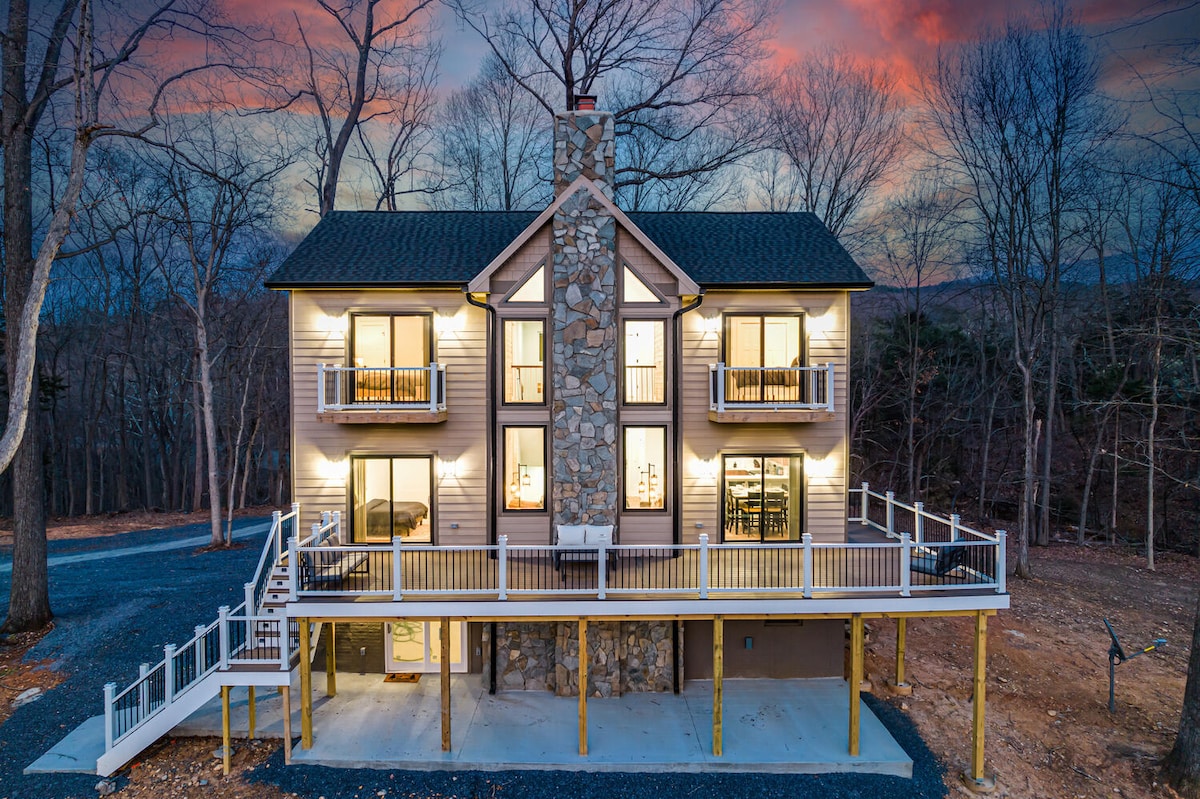 ★30 minutes du parc national ★Construit en 2024 ★Promenade jusqu'aux Outfitters de la rivière Shenandoah ★Excellents équipements ! ★Pour 6 personnes (2 sur le futon intérieur du ressort) ★Espaces extérieurs avec VUE SUR L'HIVER ★Foyer ★Foyer (électrique) Téléviseurs intelligents★ 55pouces dans la salle familiale, BR1 et BR2 ★BR3 avec jeux d'arcade ★WIFI (plus rapide et plus fiable que la plupart des habitants de la région) ★Utilisez votre propre streaming ★Salle à manger pour 4 tabourets de bar et plus pour 2 personnes ★Élégant et haut de gamme ★8 minutes du lancement du ferry de Bixler ★20 minutes - Luray ★30 minutes - Shenandoah National Parke