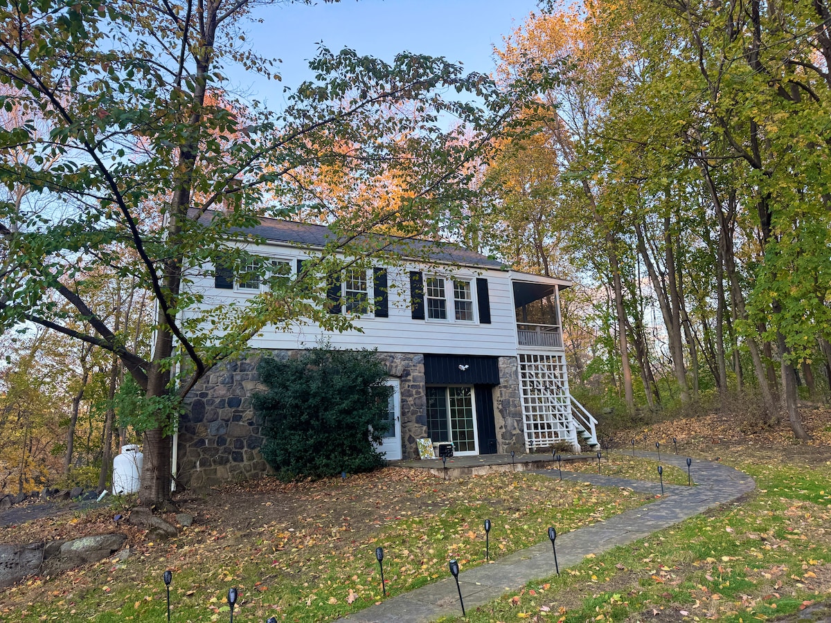 Évadez-vous dans cette retraite pour les amoureux de la nature ! La sérénité abonde dans cet appartement d'une chambre entièrement rénové avec entrée privée. Situé sur une propriété de 5 acres jouxtant le parc Harriman State avec un accès direct aux sentiers de randonnée. Vous pourrez utiliser la piscine et le jacuzzi (du jour du Souvenir au jour du Travail), ou vous asseoir et profiter d'un foyer près du ruisseau. Parc à chien clôturé pour votre compagnon à poils. À seulement 30 minutes du GWB et à quelques minutes du train et du bus.