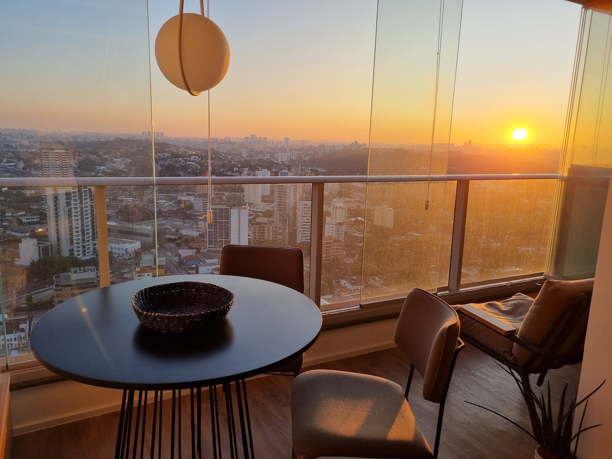 Nouveau studio avec vue panoramique — 24e étage avec piscine à débordement et style ! Profitez de São Paulo dans le confort et le style dans notre studio, aménagé avec amour pour vous accueillir. Situé au 24e étage avec *vue à 180° sur l'autoroute Pinheiros*. Une retraite moderne, idéale pour ceux qui recherchent la praticité, la commodité et une expérience unique dans la ville.