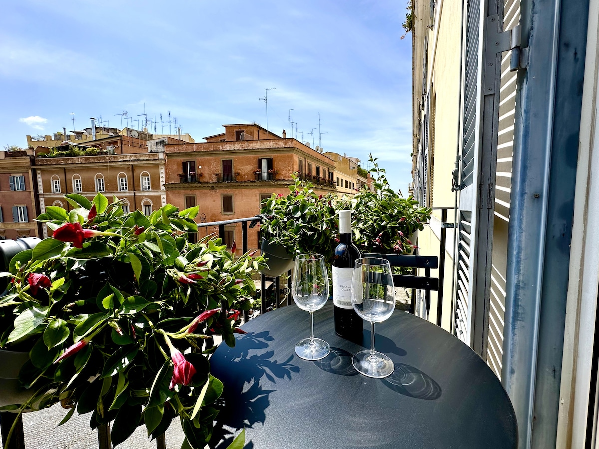 Appartement-terrasse lumineux et calme au cœur du Trastevere, avec une magnifique terrasse et une vue imprenable sur les charmants toits romains et la colline du Janicule. L'appartement est méticuleusement rénové et situé dans une rue pavée pittoresque, à deux pas des restaurants et cafés animés. La Casetta al Mattonato est située au 3e étage (41 marches, sans ascenseur) d'un bâtiment romain typique des années 1600, à distance de marche de toutes les principales attractions.