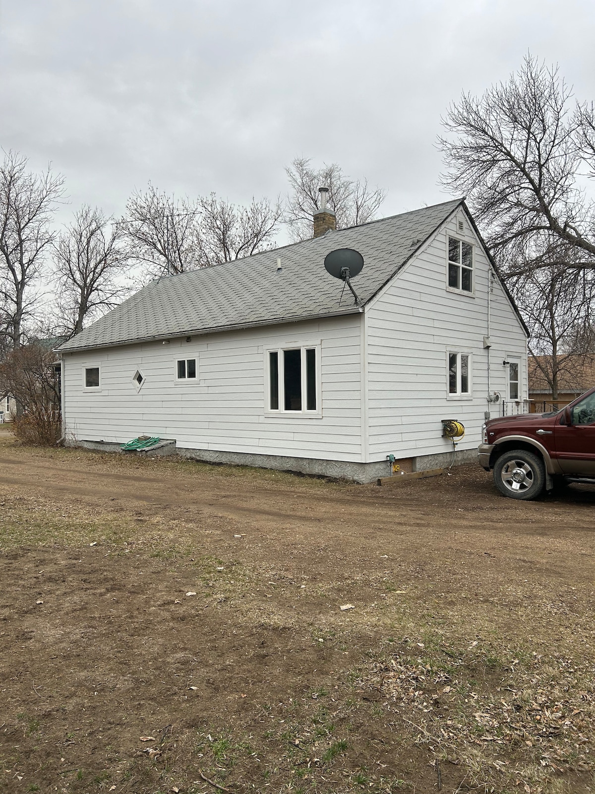 Une maison confortable de 3 chambres avec un salon spacieux, une cuisine complète, 1,5 salle de bain et une grande cour. Nous offrons même un grand chenil à l'extérieur avec une niche pour vos compagnons à quatre pattes. Parfait pour les chasseurs ou les familles qui ont besoin d'un hébergement paisible.