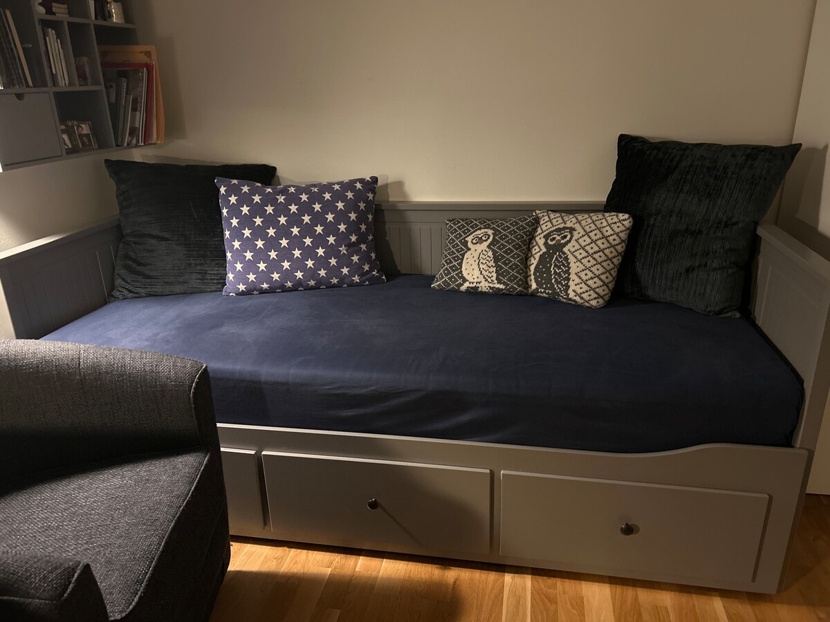 Ancien appartement rétro avec sa propre cuisine, sa salle de bain et 2 chambres est loué. Grand jardin et parking. Laveuse et sécheuse à votre disposition Proximité de l'E6 (3km), à distance de marche de la gare de Røstad (10min), de l'épicerie, de la pharmacie et de l'université Nord.