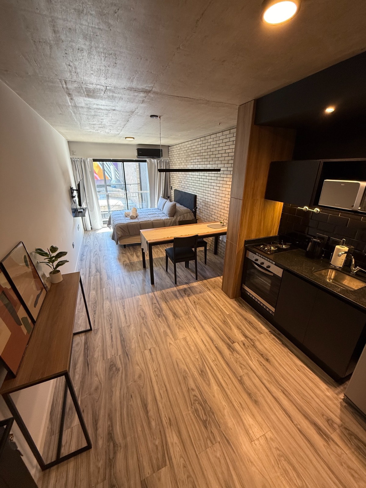 Emplacement stratégique. Appartement lumineux d'une chambre, étage élevé, avec deux balcons et de belles vues au coucher du soleil. Équipements (gymnase, quincho, piscine, solarium et patio). Profitez d'un séjour confortable et relaxant, idéal pour les couples, les voyageurs d'affaires ou les visiteurs à la recherche de tranquillité et de fonctionnalité. L'espace dispose de : Une chambre confortable avec un lit double, une table de chevet et un grand placard. Cuisine équipée avec tout ce dont vous avez besoin pour préparer vos repas préférés.