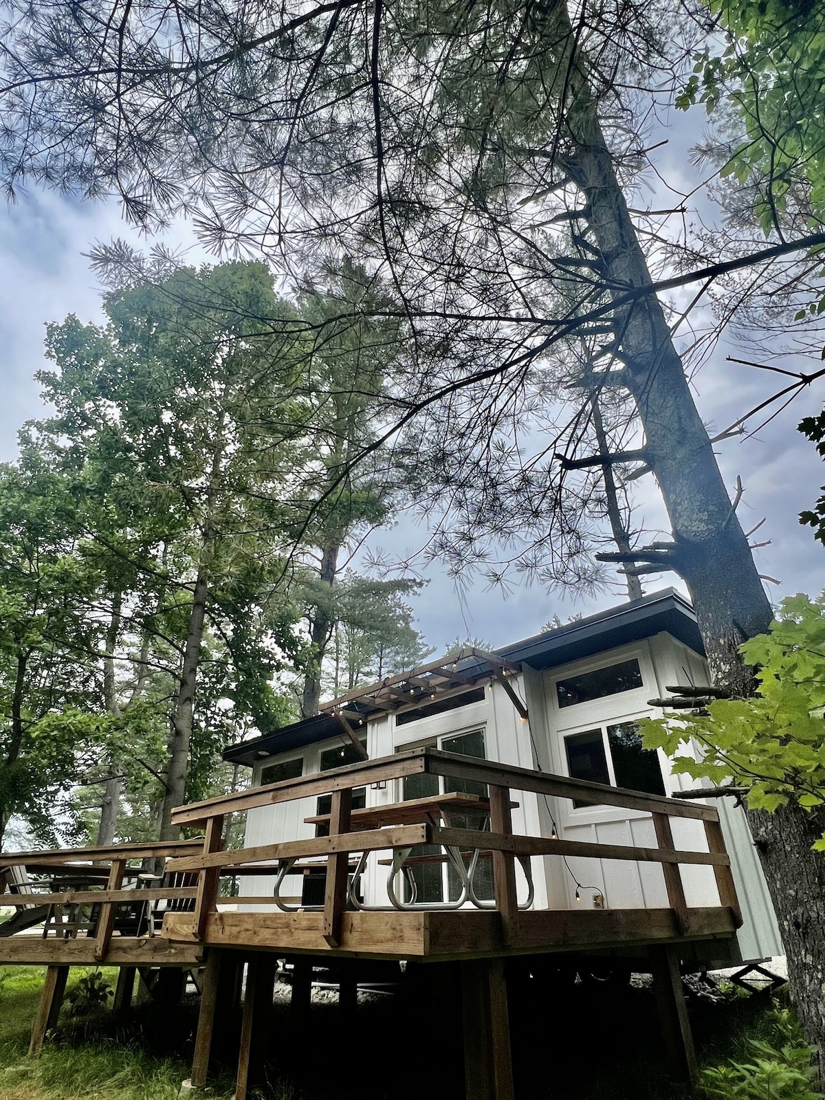 Oubliez vos soucis dans ce logement spacieux et serein. Venez profiter de cette cabane située au centre d'un terrain de 90 acres, sur un magnifique étang rempli ! Rénové en 2021, c'est un bel endroit pour venir profiter de la nature, avec toutes les commodités. Vous pourrez prendre le petit-déjeuner sur un balcon à l'étage tout en admirant les canards et le gibier sauvage autour de l'étang. La sensation unique d'être niché dans les pruches définit vraiment l'ambiance de cette cabane unique.