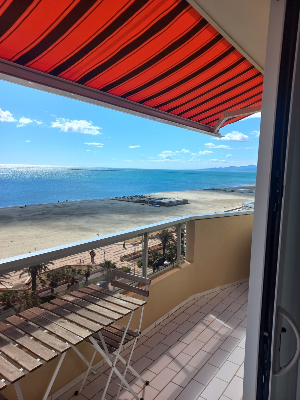Charmant studio lumineux face à la mer refait à neuf. Vue incroyable sur le front de mer du 6ème étage. Situé entre le port et le centre ville de Canet. Balcon avec terrasse afin de manger face à la mer. Dispose également d'une table intérieure. Studio disposant d'une cuisine équipée (cafetière, micro-onde, machine à laver, plaque induction) et du matériel nécessaire de cuisine. Coté chambre; 2 canapés lit convertible. Commerces à proximité (boulangerie, supérette, tabac, restaurants)