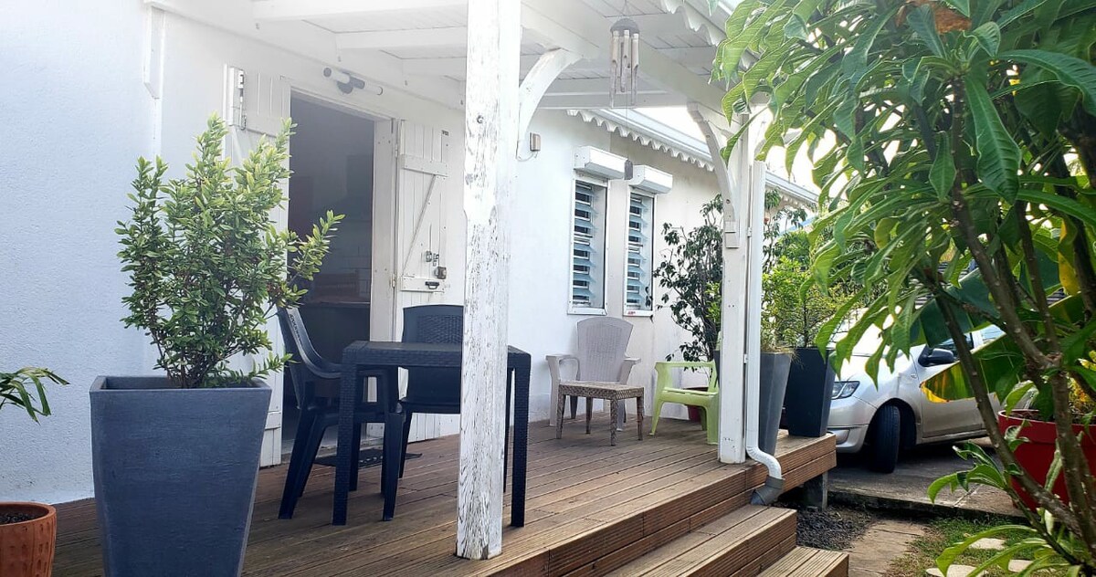 Je vous présente "O Ti Mango". Idéalement situé entre St Anne et St François, charmant T2 entièrement rénové, en bas de villa. Entrée indépendante et jardin privatif, calme et ombragé. Il est composé d'une chambre climatisée avec dressing, d'une cuisine équipée neuve, d'une salle de bain avec douche italienne, un coin salon avec son lit gigogne (2 x 90) et un brasseur d'air, et d'une agréable terrasse de 20 m2.
