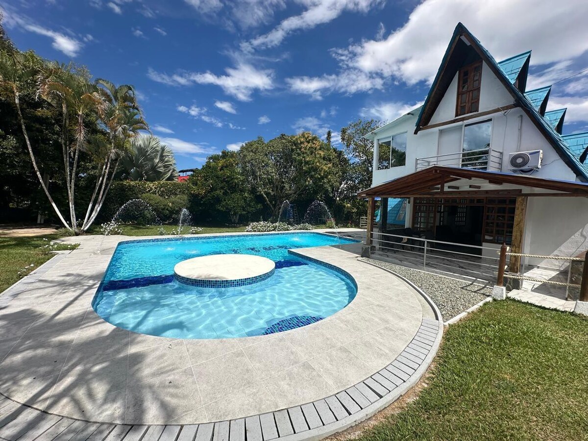 Un espace cosy, entouré par la nature, idéal pour le repos. Son excellent emplacement permet un accès rapide aux principales attractions touristiques de la région. Il est situé à seulement 10 minutes d'Armenia et de Circasia et à 30 minutes de Salento et de Filandia. De plus, en moins d'une heure, vous pouvez explorer divers parcs à thème. Il dispose d'une chambre spacieuse avec trois lits et une niche, d'une chambre avec canapé-lit, d'une cuisine équipée avec l'essentiel, d'une télévision, d'une connexion Wi-Fi et de deux salles de bains avec eau chaude.