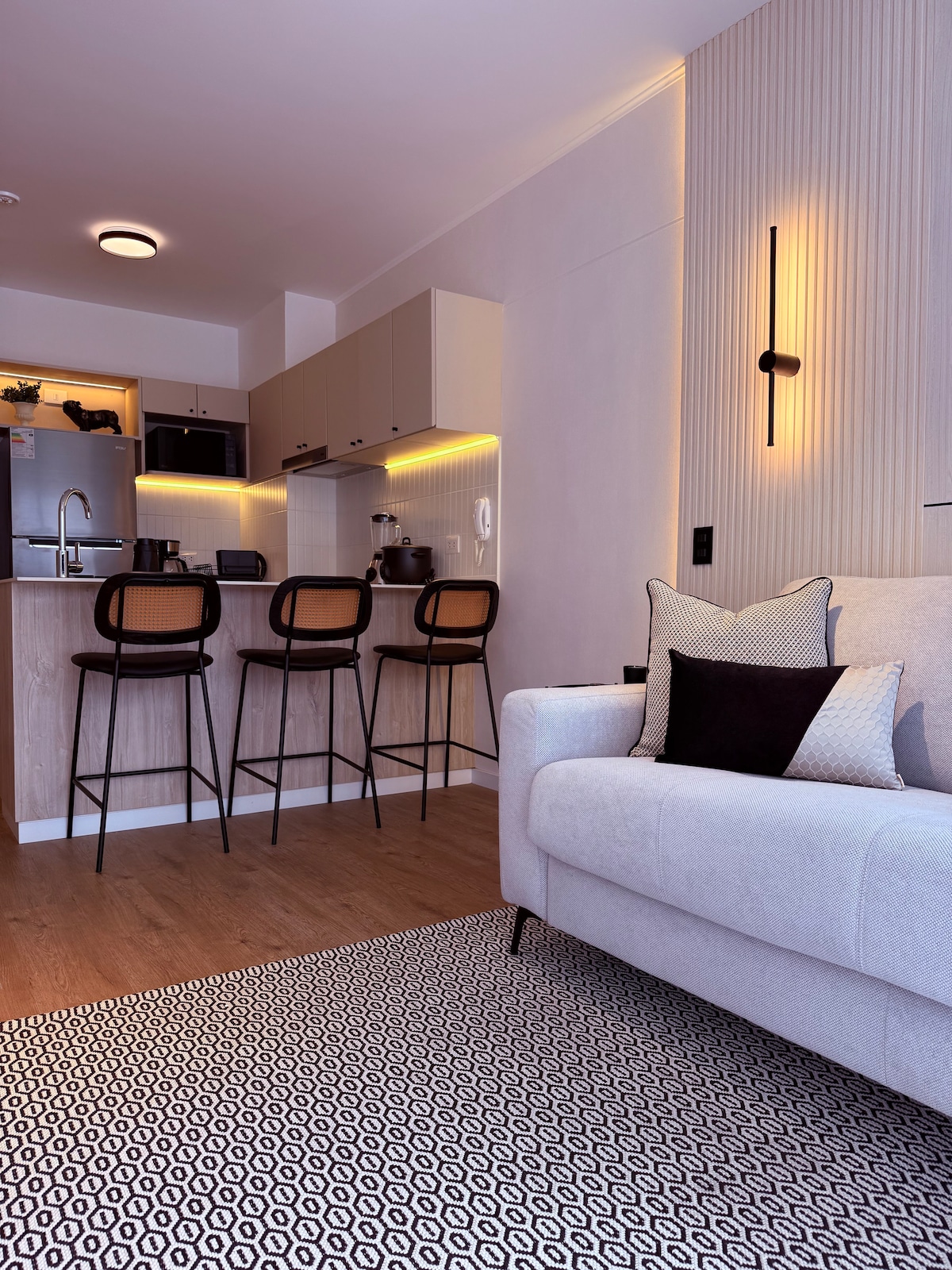 Hermoso Departamento con un diseño moderno y cálido, con acabados y mobiliario de alta calidad y muy cómodos. cuenta con Gimnasio,Coworking y piscina con previa reserva. El descanso y confort están asegurados. San Isidro es uno de los distritos mas exclusivos y seguros de Lima, estarás muy cerca a la zona financiera, restaurantes, exclusivas zonas comerciales y culturales. Consultar la disponibilidad de la piscina . La piscina se reserva con 3 dias de anticipación y es para estadías largas.