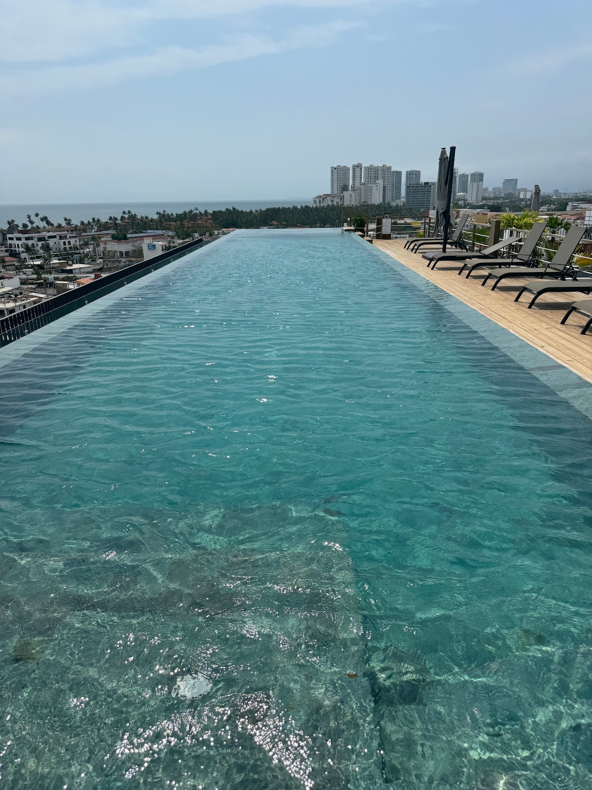 Welcome home to your MODERN 7th FL condo. Your Rooftop infinity pool w/ a BREATH-TAKING VIEW of the sea and cruise ships: simply stunning! Our space offers all the convenient amenities. Rooftop BBQ or gym with a view? You got it! All in a perfect location; only a 12-min walk to the beach, restaurants, bars, groceries, malls, cinema, and hospital. The Malecón, Romantica, and Marina are a quick 10-min drive away! YOUR dream getaway with stunning rooftop views right here in beautiful PV.