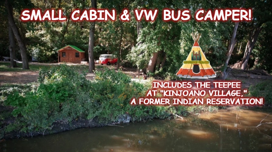 Cabane au bord de l'eau et camping-car VW ! Kayaks, canoës !