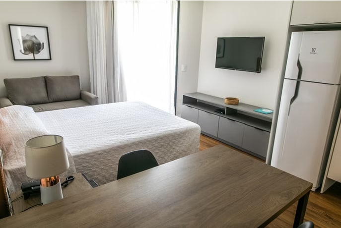 Studio Luxo 27m ² à Jurerê Beach Village, situé sur la plage internationale de Jurerê. Pied d'hôtel dans le sable. Apartamento peut accueillir jusqu'à 03 adultes. Elle comprend une kitchenette basique avec micro-ondes, un minibar, des articles ménagers, une télévision à écran plasma, la climatisation centrale, une salle de bains et une vue sur le soleil de l'après-midi.PETIT DÉJEUNER NON INCLUS ET PARKING NON INCLUS. NAO ACCEPTE LES ANIMAUX DE COMPAGNIE DANS LE DÉVELOPPEMENT.