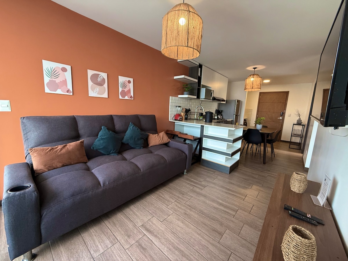 Acogedor apartamento de una habitación. Este espacioso apartamento amueblado ofrece una cocina equipada, televisor y una cómoda cama. Además, el edificio cuenta con gimnasio, zona de fogata, cinema room, lugar para fiestas, Irish pub y lavandería. Ubicado cerca de Pradera Concepción, tendrás acceso a tiendas, restaurantes y entretenimiento. Ideal para profesionales o para parejas.