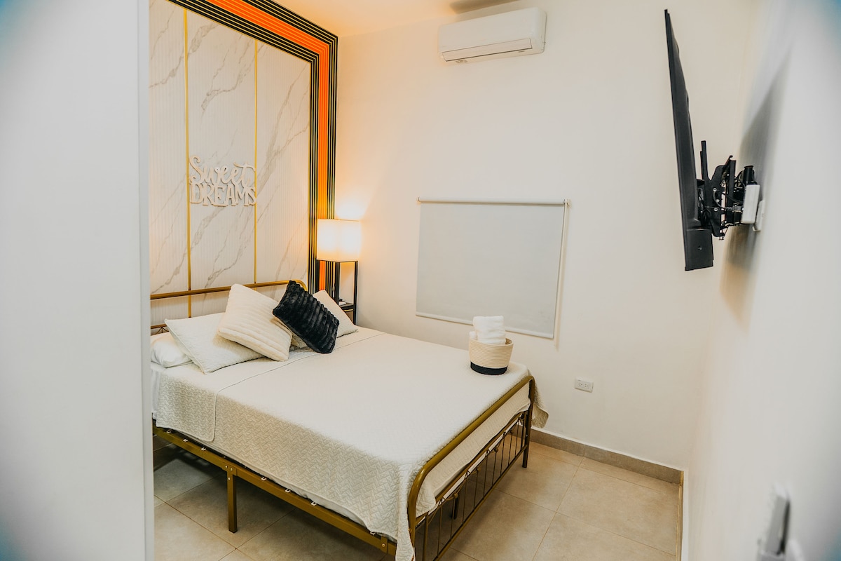 C'est un séjour confortable dans la ville avec une décoration industrielle avec tout ce dont vous pourriez avoir besoin pour votre séjour. Son emplacement facilite la recherche de transports et les déplacements. L'ambassade des États-Unis, l'INTEC, l'UNPHU, les hôpitaux, les supermarchés (Bravo et Pricesmart), le jardin botanique, sont quelques-uns des endroits à proximité. C'est un appartement économique avec toutes les commodités dont vous avez besoin. Vous bénéficierez du meilleur rapport qualité-prix. *Il est sur une avenue animée*