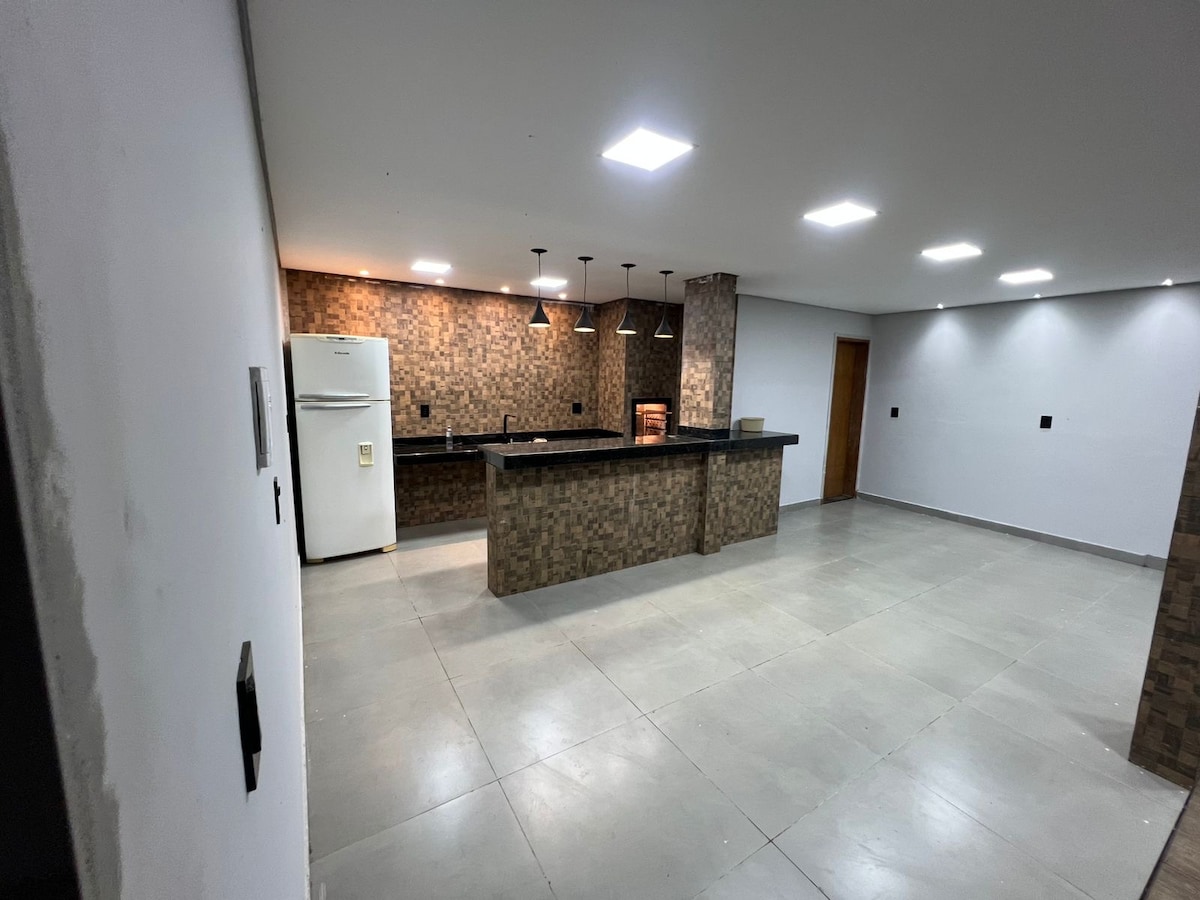 L'endroit se compose d'une maison centrale avec 4 chambres, avec 1 suite, grand salon, cuisine américaine interne avec réfrigérateur et gazinière. La zone gastronomique dispose d'un congélateur, d'un barbecue et d'un poêle à bois. L'aire de loisirs est complète avec une grande piscine. Environ 20 mètres de la maison centrale sont 4 kitnets avec 2 chambres chacune, une chambre avec un lit double et une autre avec deux lits simples; chaque kit a sa propre salle de bains et balcon.