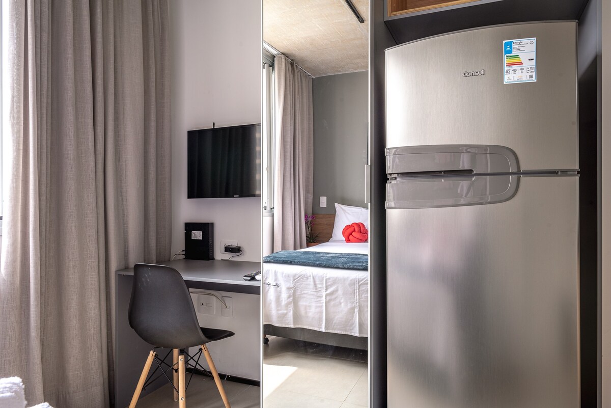 Studio avec une décoration de haut standing, idéal pour des séjours courts ou longs. Espace conçu pour accueillir jusqu'à 2 personnes dans un confort total. Situé dans le quartier sophistiqué de Moema, entouré de rues bordées d'arbres et d'une grande variété de restaurants de cuisine internationale. Accès facile aux pharmacies, boulangeries et marchés, en plus d'être proche du parc Ibirapuera et à seulement 500 mètres de la station Moema. Internet haut débit (500 Mo), garantissant une excellente expérience pour le bureau à domicile.