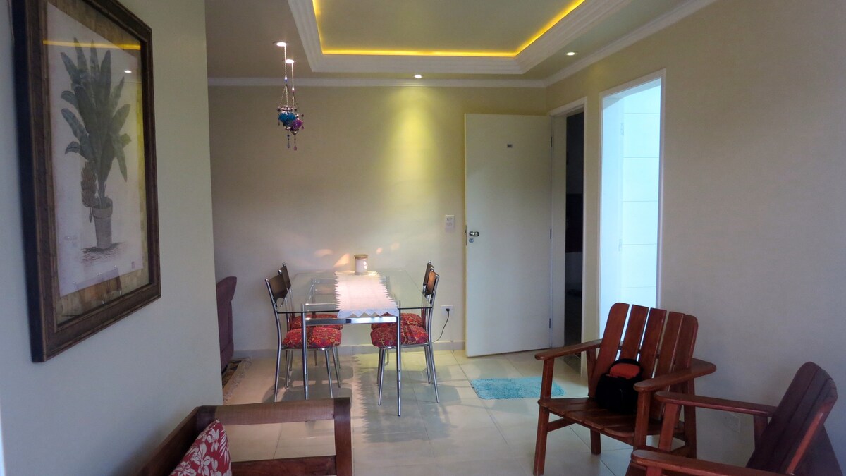 Flat recently renovated, 550mts from the beach, has daily maid service, swimming pool, 1 parking with valet service, WIFI Fiber 200MB internet and HD channels. Space for 4 people, with a double bed, a sofa bed and a mattress. Microwave, electric oven, refrigerator, cooktop, SmartTV, coffee maker, rice cooker, basic utensils for 4 people and split air conditioning. Complete trousseau included. DON'T accept PETS.