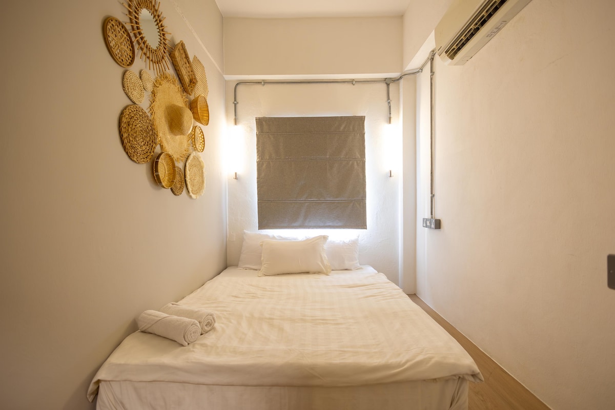 Cette chambre confortable de style moderne dispose d'un lit double et est conçue pour les voyageurs en solo ou les couples à la recherche d'un espace confortable. Bien que compact, il maximise le confort et le style, mais ne comprend pas de lave-linge.