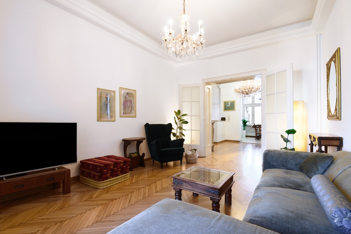 L'ensemble du groupe bénéficiera d'un accès facile à tous les sites et commodités depuis ce logement central. L'hôtel de ville, 2 parcs centraux et l'église L'église Saint-Marc est à quelques pas. L'appartement est très calme et spacieux. Avec un restaurant incroyable et un parking gratuit possible devant le bâtiment. Les hauts plafonds et les grandes chambres, combinés à des détails étonnants, vous feront vous sentir royal pendant votre séjour. Profitez du cœur de Belgrade et laissez-le vous remonter le moral.