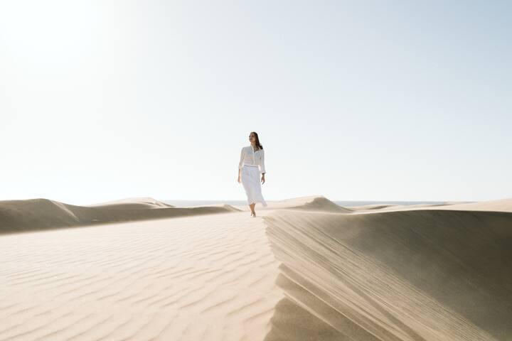Séance photo individuelle dans les dunes de Maspalomas. Profitez du paysage et d'un coucher de soleil magique. Contactez-nous pour d'autres horaires ou dates.