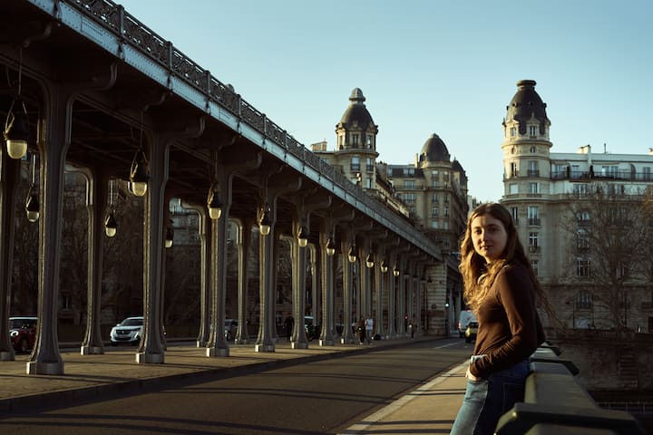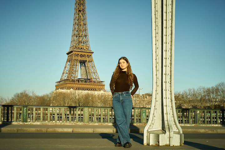 Portraits authentiques dans l'un des lieux les plus emblématiques et cinématographiques de la ville, le pont de Bir-Hakeim, avec une vue emblématique sur la Tour Eiffel.