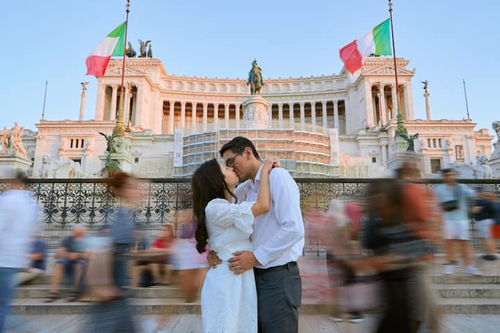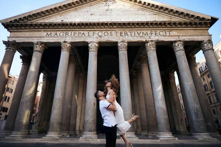 Des vues emblématiques de Rome, aux séances photo de famille, engagement, elopement et mariage.