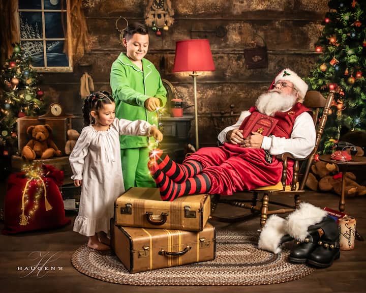 Le Père Noël adore se rendre dans l'Oregon, quelle que soit la saison. Cette séance de lecture de contes avec le Père Noël comprend des chemises de nuit et des pyjamas pour les enfants, ainsi que des œuvres d'art à chérir.