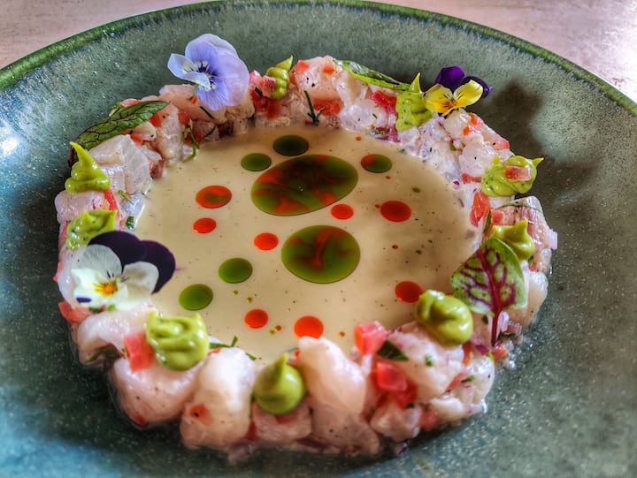 Un menu de 4 à 5 plats avec des ingrédients de qualité supérieure. Techniques de haute cuisine et présentation impeccable.
