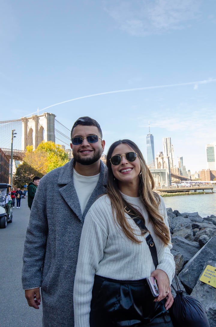 C'est idéal pour une séance photo d'une heure en famille, en amoureux ou entre filles ! Nous partirons du pont de Brooklyn, côté Brooklyn, et marcherons jusqu'à Dumbo, où vous pourrez admirer la ligne d'horizon de Manhattan.