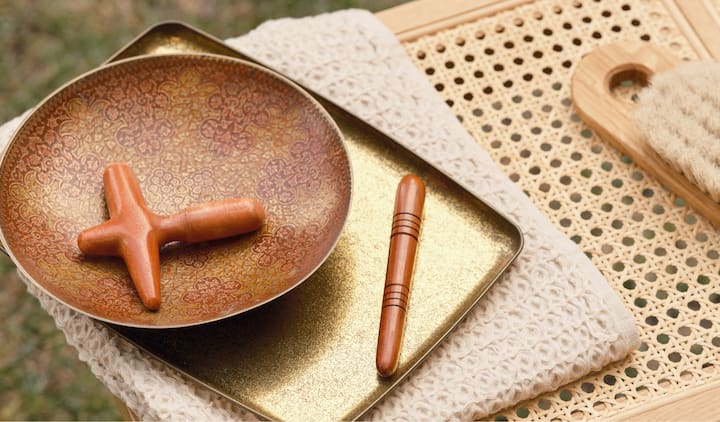 Drainage lymphatique et modelage du corps avec des outils en bois. Massage énergétique, active la circulation et amincissant.