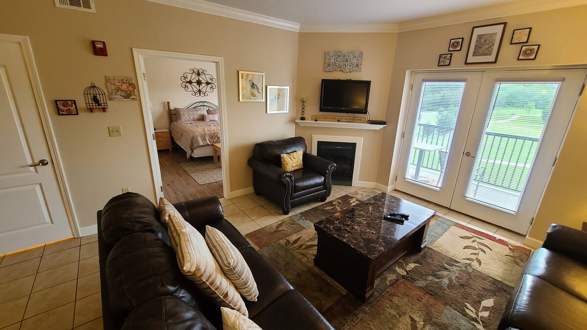 Cadre magnifique et paisible au cœur des attractions de Pigeon Forge. Le balcon privé donne sur la rivière où vous pourrez observer ou attraper des poissons pendant votre séjour. L'emplacement est pratique et proche du cœur des attractions et de Tanger Outlets, sur la même route que l'Apple Barn. Profitez de la piscine saisonnière et de l'accès à la rivière ainsi que du foyer au gaz. Le logement offre une cuisine complète, un lave-linge et un sèche-linge, deux chambres et deux salles de bains complètes avec baignoire de jardin dans la salle de bains principale.
