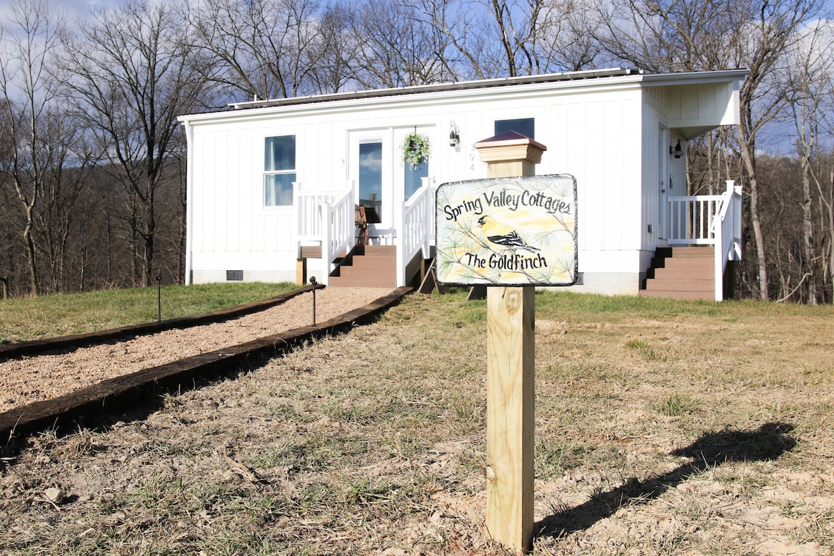 Finn's Frolic est notre charmante tiny house de campagne. Moins de 2 heures DC, Charlottesville. Belle ferme, vue sur la montagne, terrasse, foyer, barbecue au charbon de bois, et bien plus encore. L'aménagement paysager est en cours ! La cuisine est entièrement équipée, vintage et nouvelle vaisselle. Le salon dispose d'une cheminée électrique, d'une immense baie vitrée, d'une causeuse confortable. La chambre est en haut des escaliers traditionnels : chambre loft, plafond en pente de 7 pieds. Endroit idéal pour se détendre, base pour visiter les vignobles locaux, les attractions ! Parfaitement imparfait !