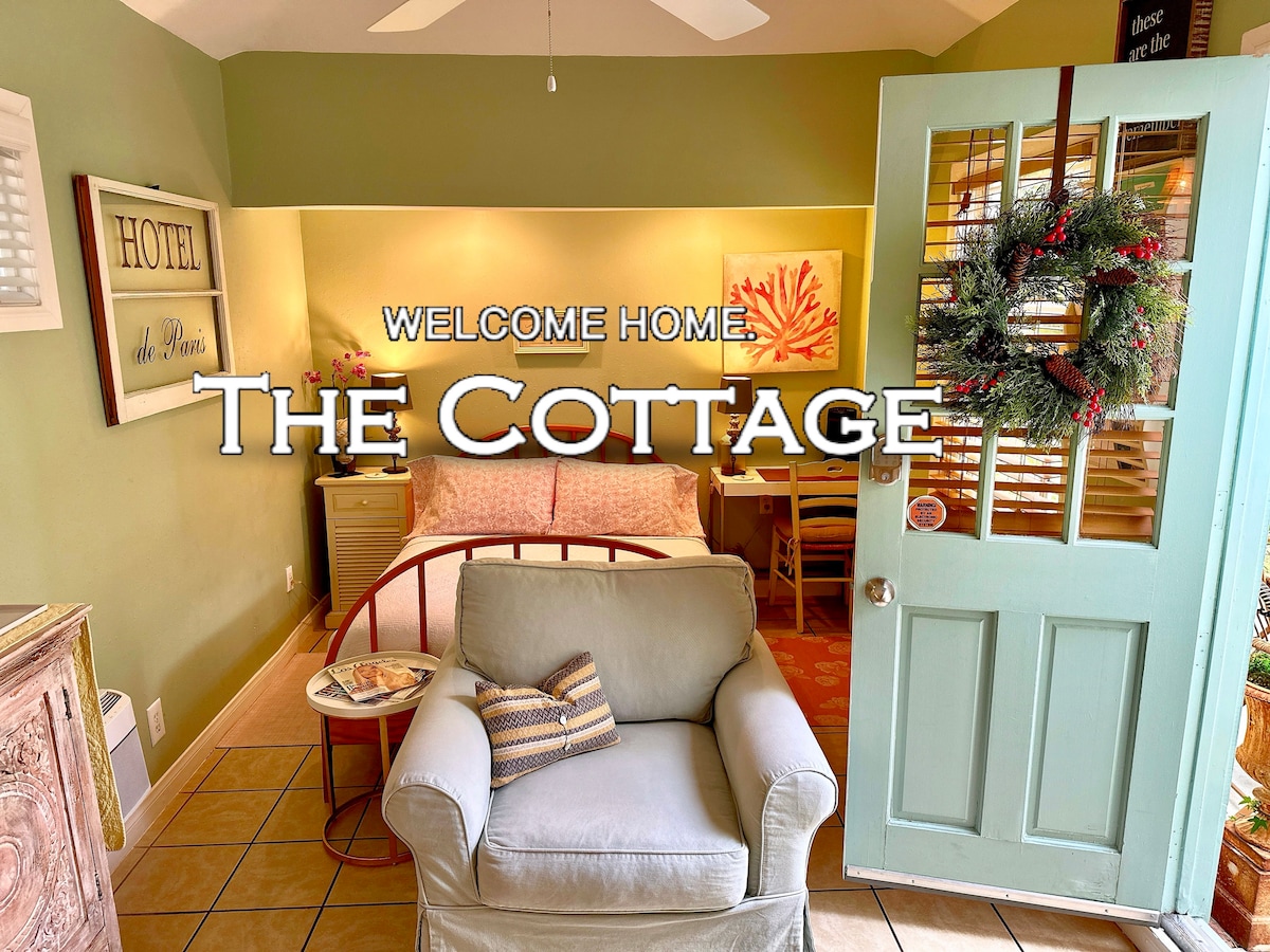 Havre de paix privé chaleureux et confortable dans une maison d'hôtes récemment rénovée. Notre cachette tranquille est nichée derrière un jardin luxuriant avec des ANIMAUX EN LIBERTÉ, avec sa propre entrée et sa cour privée. Nous fournissons une kitchenette entièrement équipée, un lit King Size convertible, de nombreux placards et étagères, des produits de bain et de douche de qualité, des draps et des serviettes propres, une connexion Internet sans fil, un sèche-cheveux, une machine à café, Netflix, HBO MAX, Hulu, Disney et d'autres chaînes. Détendez-vous sur le canapé extérieur ou dînez en plein air.