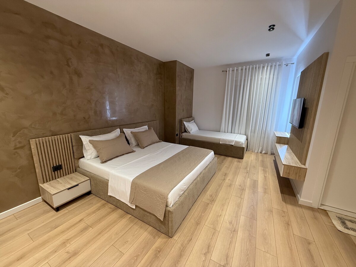 Notre chambre double confortable est conçue pour le confort et la détente, parfaite pour les couples, les voyageurs en solo ou les voyageurs d'affaires. Entièrement meublée et récemment rénovée, la chambre comprend un lit double confortable, la climatisation et une connexion Wi-Fi haut débit gratuite. Situé au cœur de la vieille ville de Shkodër, à seulement 100 m de la rue piétonne, à 250 m de la cathédrale et à quelques pas de l'université de Shkodër, vous serez entouré de cafés, de restaurants et de sites culturels.