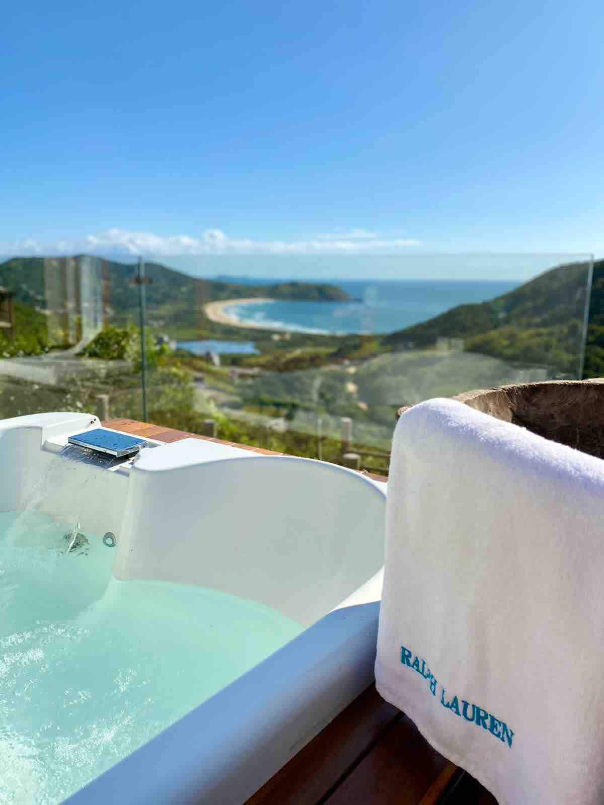 Profitez du refuge EXCLUSIF ET PRIVÉ avec jacuzzi CHAUFFÉ, au milieu d'une forêt avec une VUE spectaculaire du coucher de soleil sur la Lagoa Encantada. Les suites disposent de la climatisation, TV et Wi-fi 600MB Ofurô chauffé et avec hydromassage. Kiosque Espace Gourmet complet. Il y a deux suites, l'une avec un lit double et l'autre avec deux lits doubles, nous ne louons pas séparément. Proche de la plage et du centre. Accès à la plage par un sentier ou un escalier exclusif, un bel exercice pour le corps et l'âme.