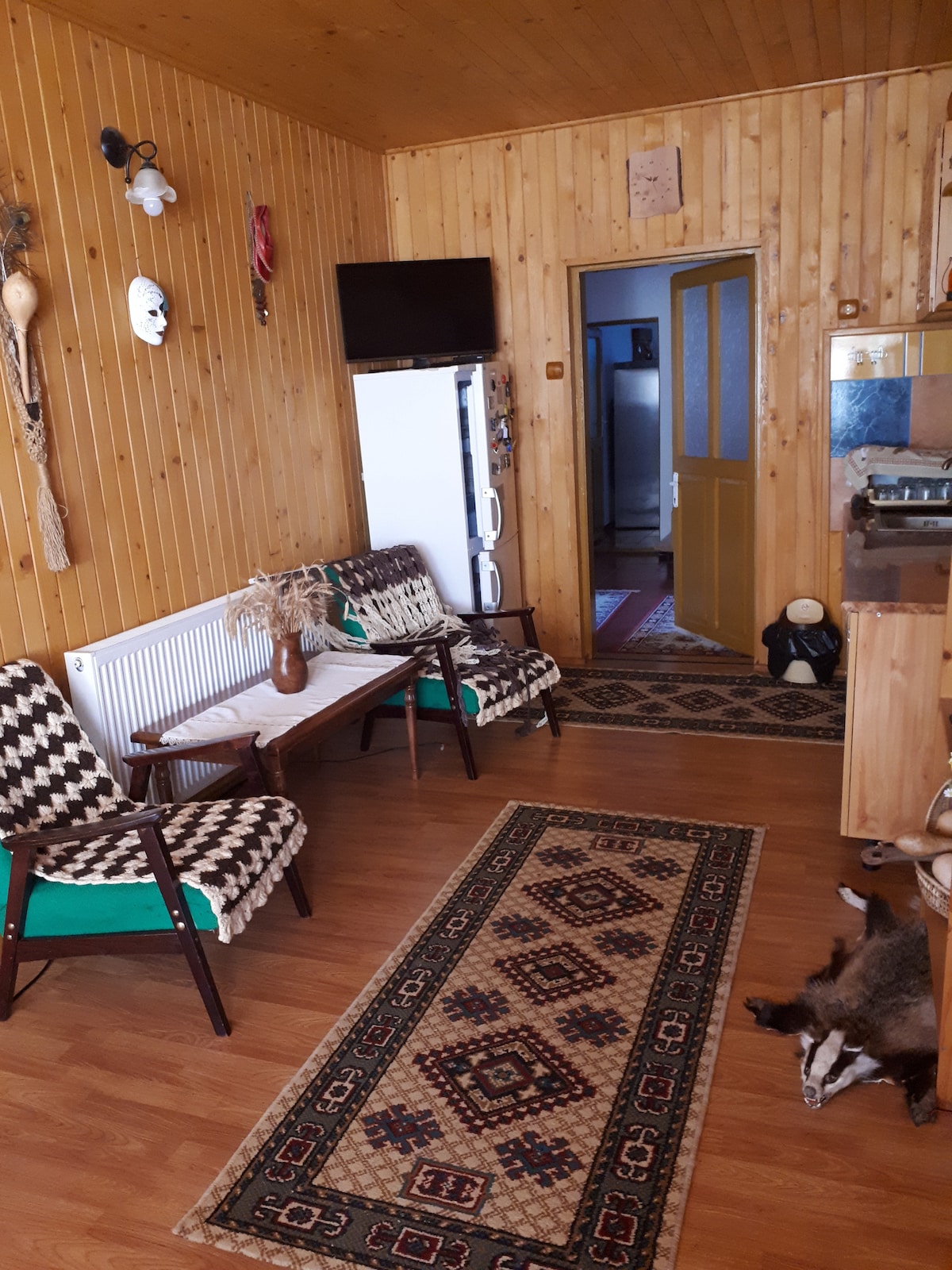 Une maison de vacances moderne située en pleine nature, au pied du massif de Siriu, à environ 170 km de Bucarest. Nous avons : -8 logements en 4 chambres doubles avec salle de bain privée -Salon avec foyer, deux canapés convertibles et salle de bain - une cuisine entièrement meublée et équipée - espace barbecue - un grand cour de 4000 m ² avec des arbres forestiers et fruitiers - Parking privé Pour être aussi confortable que possible, notre emplacement vous fournit : - Télévision dans chaque pièce - Wi-Fi - Smart TV dans le séjour