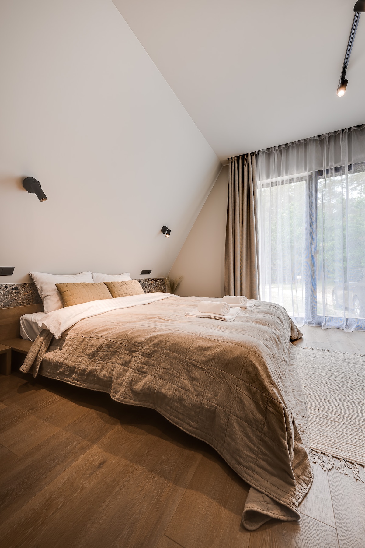 Tingulis est une escapade romantique pour deux en pleine nature. Le seul chalet dans toute la région, vous apprécierez donc une intimité et un silence complets ici. Le chalet est chauffé et climatisé, il est donc confortable pour se reposer à tout moment de l'année. Autour – jusqu'à 4 étangs approvisionnés, vous invitant à vous promener et à vous détendre. En été, baignade rafraîchissante, en hiver, soirées confortables dans un jacuzzi en plein air. Le bain ofuro N'EST PAS INCLUS dans le prix. Prix par nuit 40 Eur.