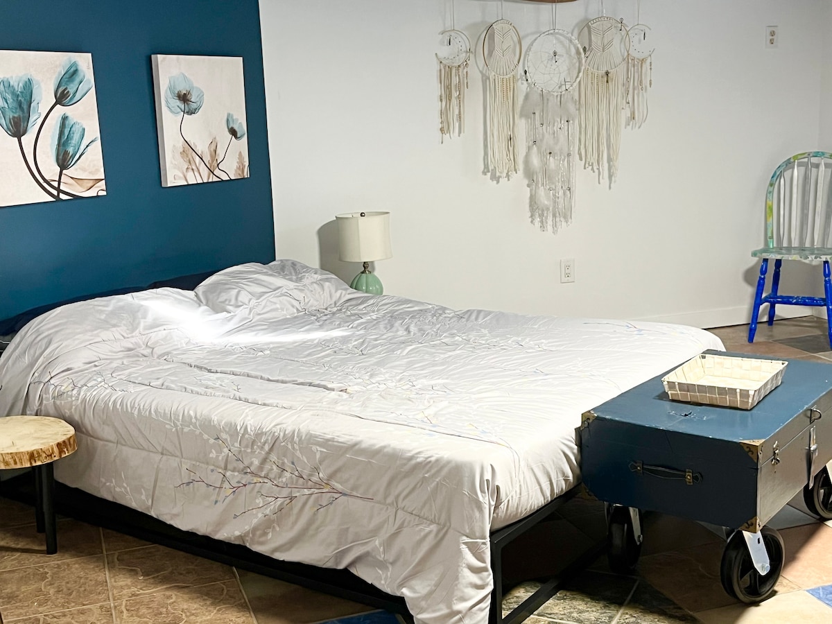 Une suite lumineuse et confortable au sous-sol avec un aménagement spacieux à aire ouverte. La cuisine, le salon et la chambre partagent un grand espace avec deux lits queen size 🛏️🛏️ : parfait pour les visites de courte durée, les voyages d'affaires ou les séjours prolongés. La suite est simple, pratique et facile à aménager — idéale pour les voyageurs qui veulent un endroit propre et fonctionnel pour se détendre.