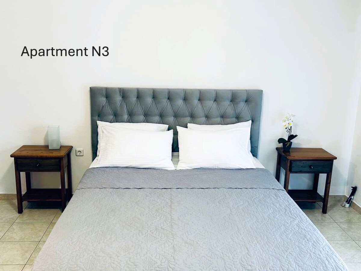 Appartement dans le centre de Skiathos avec chambre, salon, cuisine entièrement équipée et salle de bain. Il dispose d'un balcon où vous pourrez déguster votre petit déjeuner ou votre café. Il y a aussi une machine à laver, la climatisation, le wifi, netflix cosmote tv. Il est idéal pour les couples. Accès aux points centraux de l'île ainsi qu'aux attractions. Très proche des commerces, des marchés, des restaurants, des cafés, des bars. Il est situé dans un quartier calme, sans nuisances ni bruit.