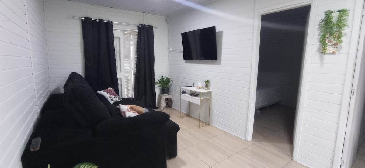 Maison confortable près du centre, Sombrio - SC Peut accueillir jusqu'à 6 personnes confortablement, et peut en accepter plus si nécessaire. La maison dispose d'une cuisine, de 2 chambres privées, de lits supplémentaires, d'une salle de bain, d'un salon avec Smartv/Netflix. Espace extérieur avec des arbres et de l'ombre naturelle et sinueuse. Supermarché, pharmacie, boulangerie, cafés, station-service dans un rayon de 300 mètres permettant un accès facile à tous les types de services essentiels. Courriel: drds.marcelo@outlook.com.Br