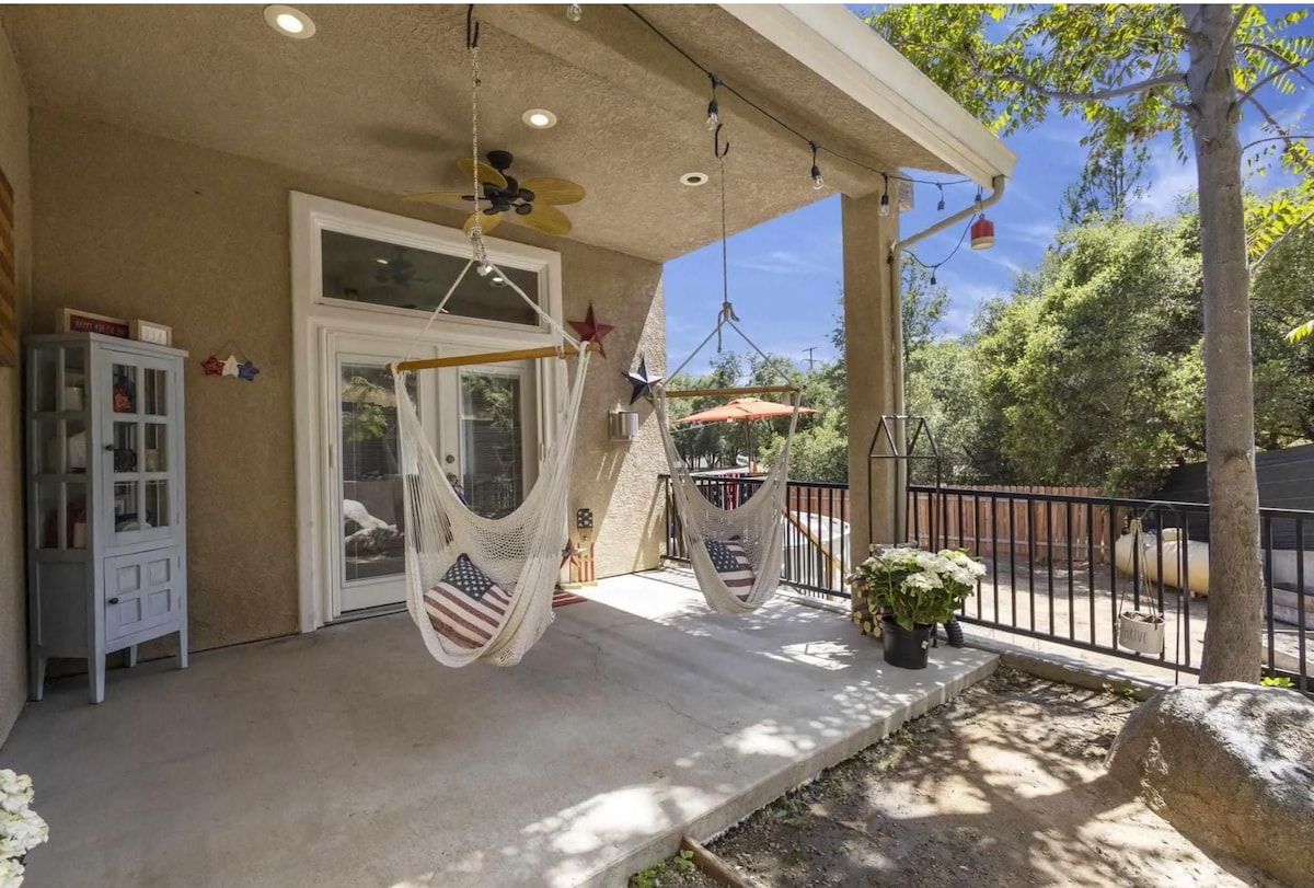 * Maison de plain-pied de 2 221 pieds carrés de 4 chambres et 2 salles de bain récemment rénovée. * Sauna extérieur en cèdre pour 6 personnes. * Télévision HD 70"avec télévision Youtube en direct * Éclairage personnalisé à intensité variable * Chaises pour hamac * Bar à café Nespresso * NBA Jams Arcade * Table de ping-pong * Cornhole * Lit King Size de luxe * Garage pour 2 voitures * WIFI rapide avec un réseau maillé * Gamme de style gastronomique * Climatisation avec deux thermostats suivants * Foyer à gaz * Laveuse-sécheuse * Ventilateurs de plafond * Séjour en plein air. * Tapis de course * Yosemite (87 km) * Lac New Melones (16 miles) * Dodge Ridge (51 km)