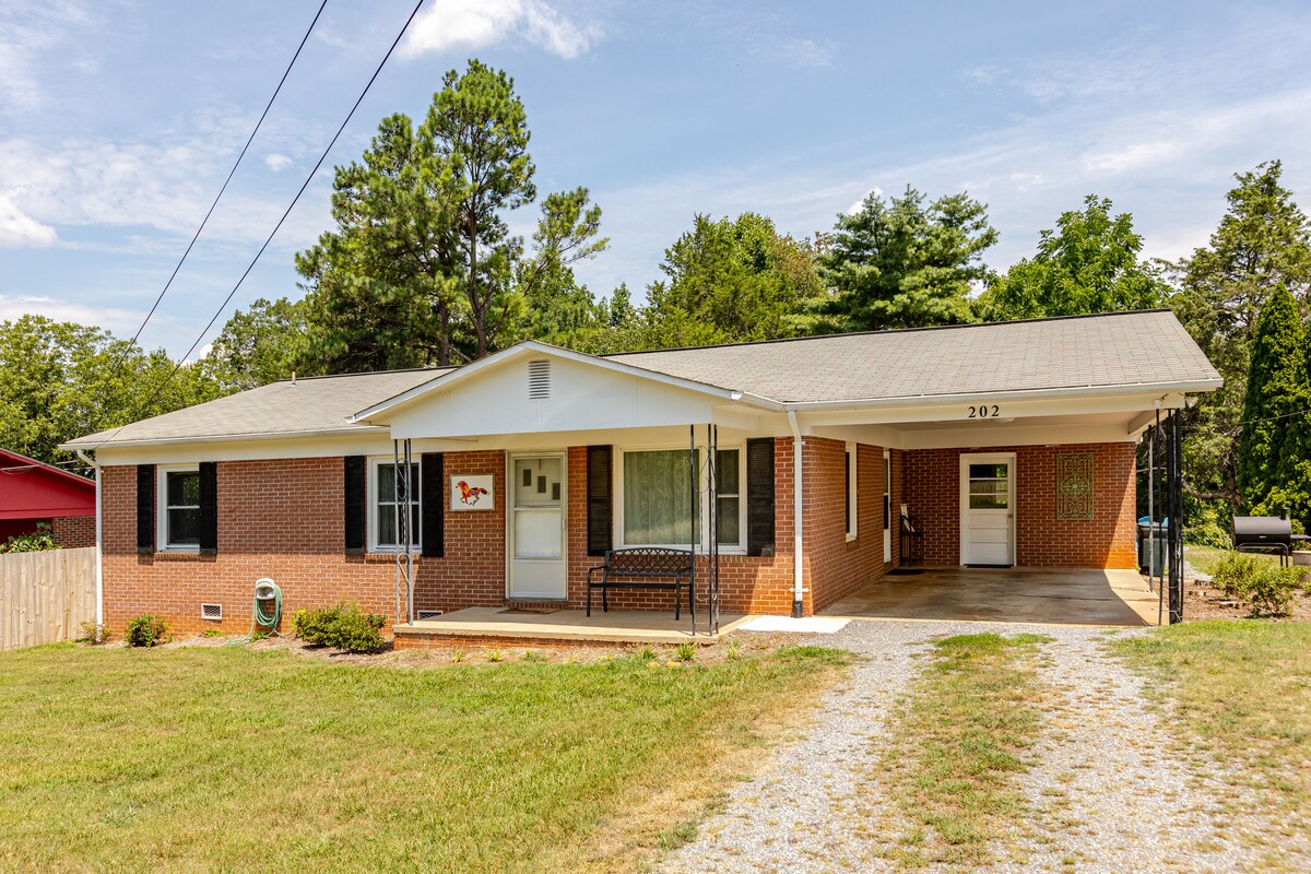 Détendez-vous en famille dans ce chalet entièrement rénové construit dans les années 1940. Doté de deux chambres avec beaucoup d'espace de détente confortable. Profitez de la cour arrière avec un jacuzzi (gonflable) et un éclairage de nuit. Faites griller sur le charbon de bois ou détendez-vous près du feu. Juste à portée de voix du verger de pommiers où vous pourrez satisfaire vos papilles avec une pomme fraîche croquante, un granité au cidre de pomme ou une tarte aux pommes frite. Bien que rurale, cette maison est à seulement 4 miles de l'autoroute 40 ! À environ une heure d'Asheville et de Charlotte.