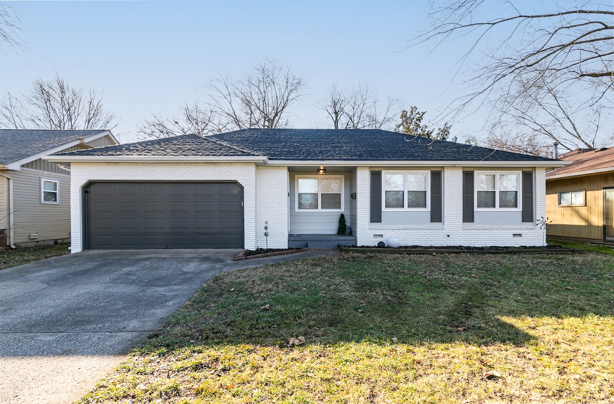 Installez-vous et détendez-vous dans ce charme contemporain rénové. Fraîche, propre et joliment aménagée, avec patio, terrasse couverte et cour clôturée, cette maison est une question d'EMPLACEMENT ! Sur Medical Mile entre les hôpitaux Mercy et Cox, à un pâté de maisons du centre commercial et du complexe de softball/pickleball de Meador, et à côté du sentier South Creek qui serpente à travers le parc Nathanael Greene et le centre botanique. Apportez vos vélos et vos chaussures de marche ! Bass Pro, le centre-ville et les universités sont très proches ! Venez séjourner chez nous !