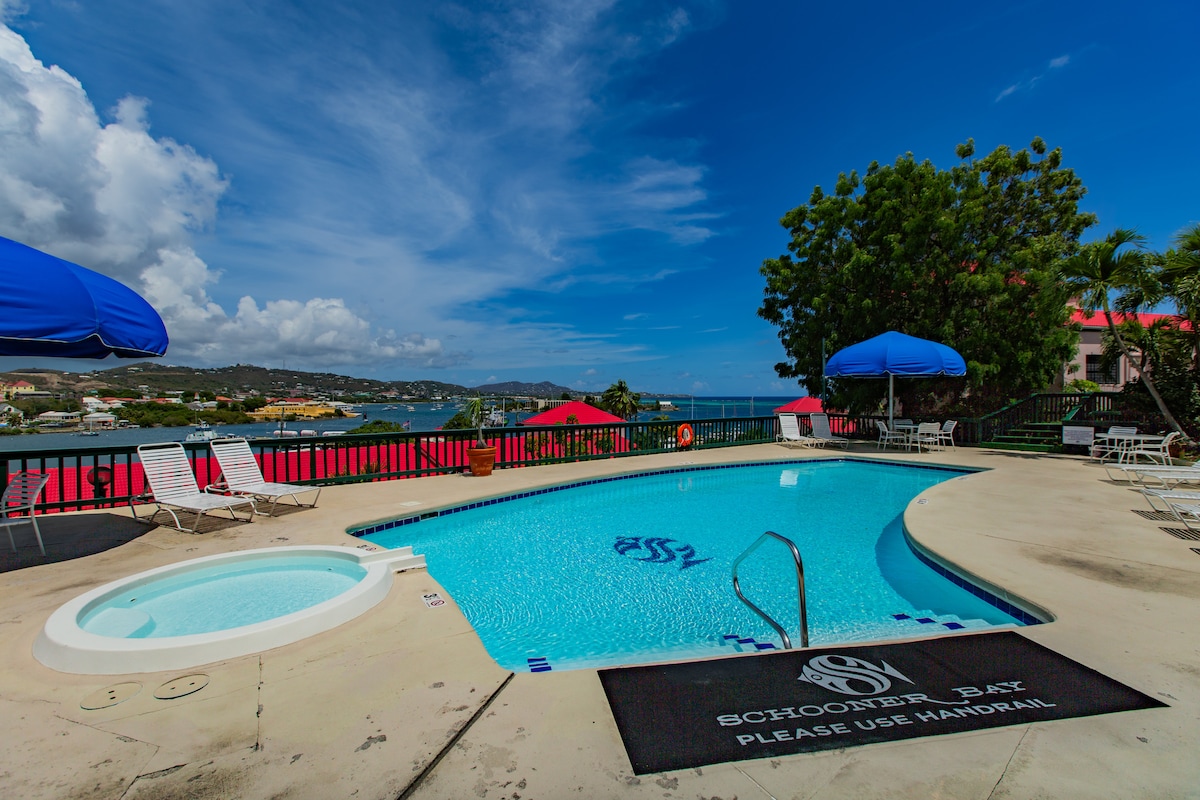 Location, location, location...Sea & Sand in STX has it, along with so much more. All of the photos were taken at The Suite; no drone shots nor stock photos. With its spacious balcony perched on the top floor, Sea & Sand in STX enjoys views straight out to sea, evening breezes, and the quiet tranquility of being up top. The Colony Cove pool & beach are right there within the secured gated community and the shops, restaurants & nightlife of Christiansted are a mere 5-minute drive into town.