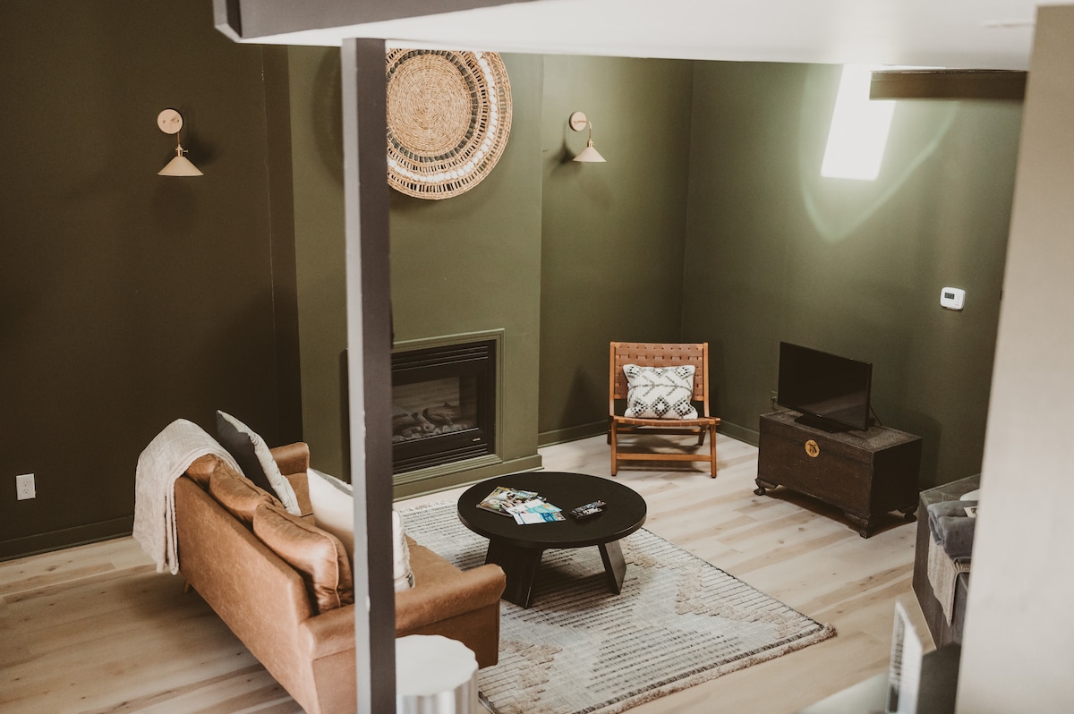 Bienvenue dans la suite Charlotte. Ce loft historique récemment rénové est situé dans le centre-ville d'Utica, IL (Starved Rock et Matthiessen State Parks). Il peut accueillir jusqu'à 4 personnes, mais est idéal pour une escapade romantique ou un voyage entre filles avec un lit King Size et un canapé-lit Queen Size. Le niveau inférieur du Bickerman abrite le café, glacier et épicerie de Bruce & Ollie. C'est un endroit où tout le monde peut en profiter ! Le bâtiment a été restauré tout en conservant sa riche histoire !