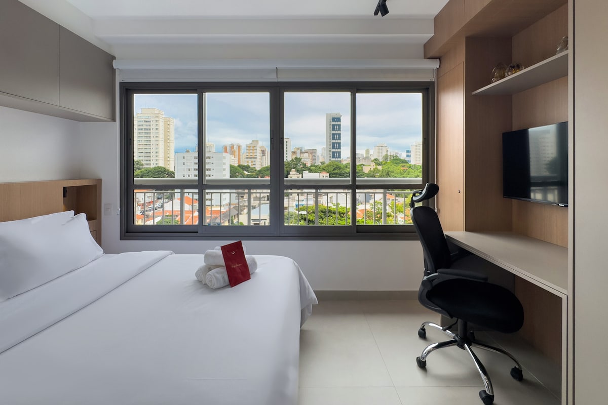 Studio de style industriel inspiré de New York, avec des environnements planifiés qui allient charme et modernité, dans la région la plus convoitée de São Paulo. À quelques pas de l'Av Paulista, à côté de 23 de Maio avec un accès rapide à l'aéroport et à quelques minutes du parc Ibirapuera. La station de métro Paraíso est à la porte de l'immeuble et, à proximité de la zone hospitalière, elle apporte praticité et sécurité. Un portail réaliste de New York donne l'impression d'être dans la ville. Le lit Queen Size et la table confortable apportent confort et style, avec une vue unique sur São Paulo.