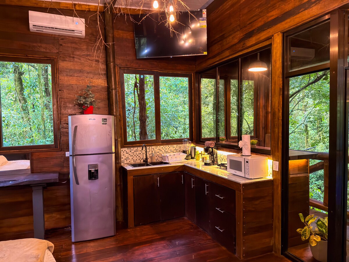 Bienvenue à Baby Monkey, un chalet confortable et privé en pleine nature. Cette cabane est parfaite pour ceux qui cherchent à échapper à la ville. Baby Monkey est situé dans un quartier très réservé. Vous pouvez profiter de la visite de certains des habitants les plus intéressants de la jungle : les singes. Imaginez-vous vous réveiller le matin au son de la nature et savourer une tasse de café sur la terrasse tout en regardant les singes sauter d'arbre en arbre. Ou profiter du grand jacuzzi qu'il offre avec vin et paix.