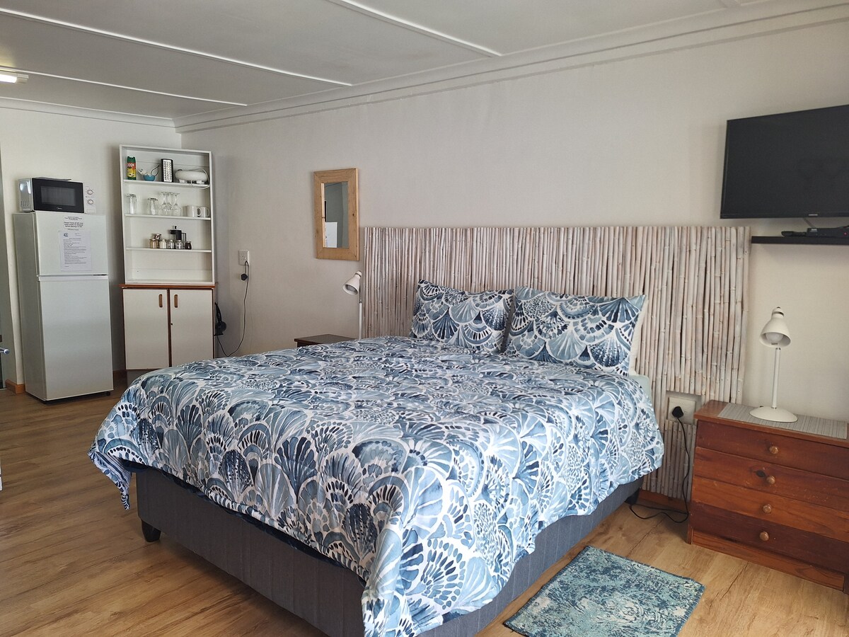 Détendez-vous dans cet espace calme et élégant avec une vue panoramique à 180 degrés sur Struisbaai. Cet espace respectueux de l'environnement est alimenté par l'énergie solaire et le gaz et dispose de réservoirs de stockage d'eau de pluie…donc pas de délestage ou de problèmes d'approvisionnement en eau. Elle dispose de son propre patio ombragé, d'une salle à manger extérieure et d'un jacuzzi au feu de bois. Il est à quelques pas du bord de mer, du port, des magasins et des restaurants. Le logement se compose d'un studio, d'une mini kitchenette, d'un lit queen et d'une douche à l'italienne surdimensionnée.
