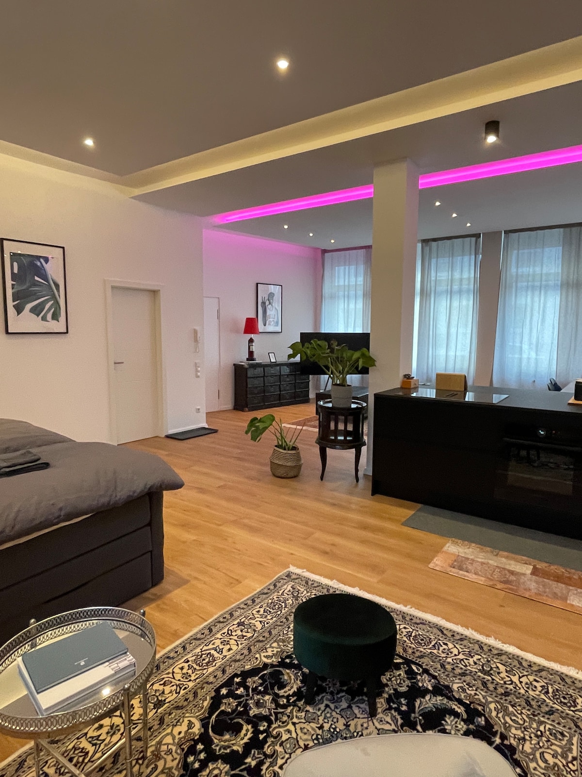 Bienvenue dans un lieu de retraite élégant ! Ce loft design spacieux de 80 m² allie luxe moderne et confort de vie, parfait pour vivre, travailler ou se détendre. Plan 🏡 d'étage ouvert pour une ambiance de vie unique 🍽 Cuisine design – entièrement équipée 🛋 Meubles design élégants au look intemporel et épuré 📶 Wi-Fi haut débit – idéal pour le bureau à domicile ou le streaming Réservez dès maintenant votre expérience de loft unique et profitez du confort, du design et du meilleur emplacement à Stuttgart Ouest !