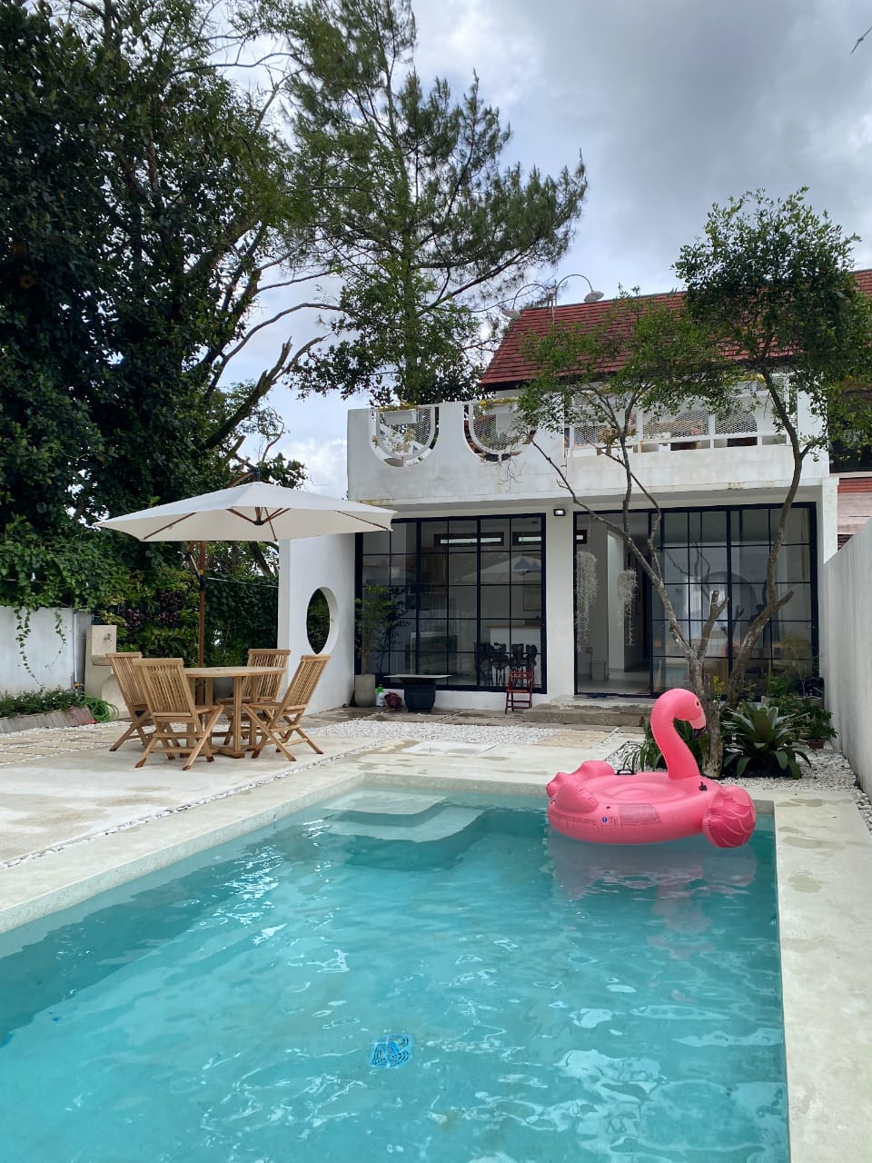 La villa est située dans le quartier complexe de la Villa Istana Bunga Lembang, Parongpong, Java ouest. Villa avec air frais, environnement calme et confortable. Parfait pour se rafraîchir, se réunir en famille nombreuse ou avec des amis. Équipements : - 4 bungalows avec chaque chambre - 4 salles de bain (avec chauffe-eau) - piscine privée - belvédère, cuisine privée, espace barbecue - wifii - place de parking sampai 5 mobil